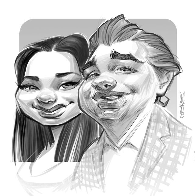 We start with a sketch of the people or subject matter and send you a draft of the caricature illustration for approval and feedback.